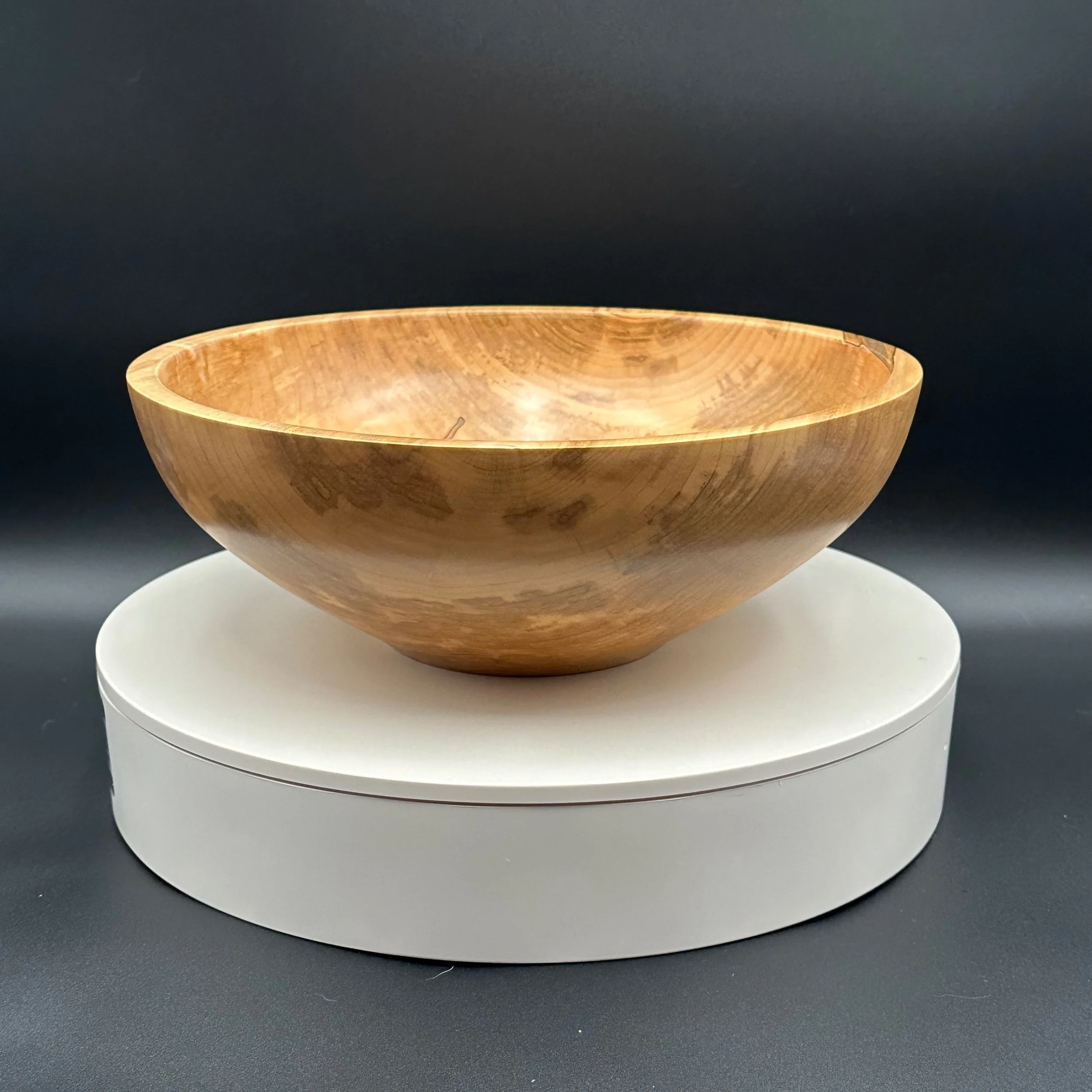 This is a straightforward Ambrosia Maple bowl featuring a Satin Finish that beautifully highlights the exquisite grain pattern of the wood.